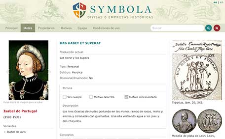 - Descripción: Base de datos y biblioteca digital que reúne divisas o empresas históricas (emblemática personal) empleadas por reyes, caballeros, damas, eclesiásticos, académicos, impresores, etc. de los siglos XIV-XVII. Se ofrece: información biográfica sobre los propietarios de las divisas (y su retrato, si disponemos de él), transcripción y traducción de los motes, clasificación de cada divisa, descripción, motivos representados, significado del conjunto, análisis y comentario global, bibliografía primaria y secundaria relacionada. Además, se ofrecen imágenes de las divisas o empresas si disponemos de ellas.